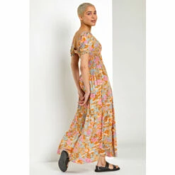 Simple, Chic, Stunning. Embody the stylish Parisian woman in this black frilled shoulder midi dress. Fashioned from a simple linen blend material, this shift dress is a V-neck button-down with a tie waist and cute front pockets. A pair of Roman sandals will be the perfect pairing for this day dress and switch to some on-trend kitten heels for a demure look whether home or away.