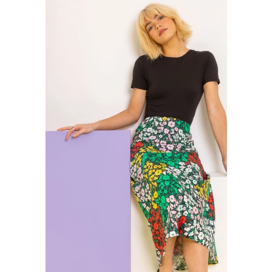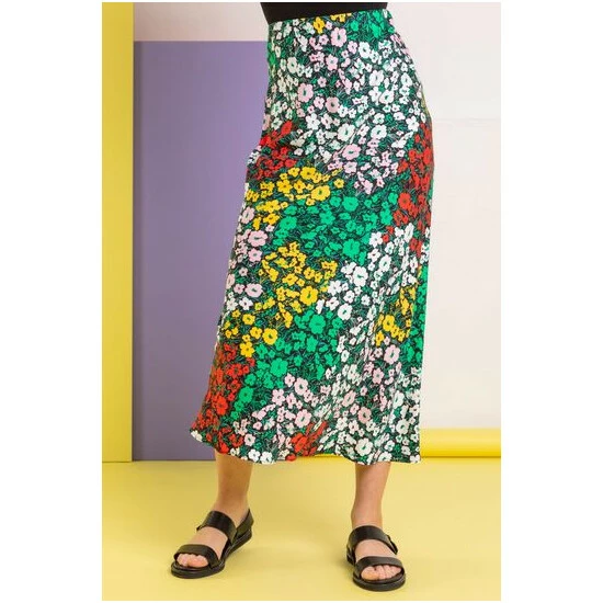 Let your flower collection grow and bloom this season with Dusk s floral print midi length skirt. Featuring a standout feminine print, elasticated waistband and cut to a relaxed fit, this skirt is comfortable and easy to wear with your casual wear wardrobe. Style it with a vest top and slip-on s for an everyday outfit, or dress up with a black or white off-the-shoulder top and heels for an evening look that will turn heads.