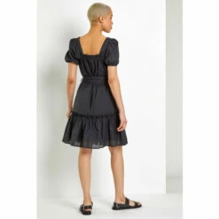Every lady deserves flowers so why not get a dress that has it all! Flaunt your stuff in our puff sleeve piece, elasticated cuffs create a slight frill that mirror the adorable frill hemline. Secured to the back with a hidden zip, this delicate tea dress is completed with a stylish keyhole detail that buttons to the front. Add strappy heels and clutch for a date night outfit idea or alternatively pair with trainers and a denim jacket to keep it casual.